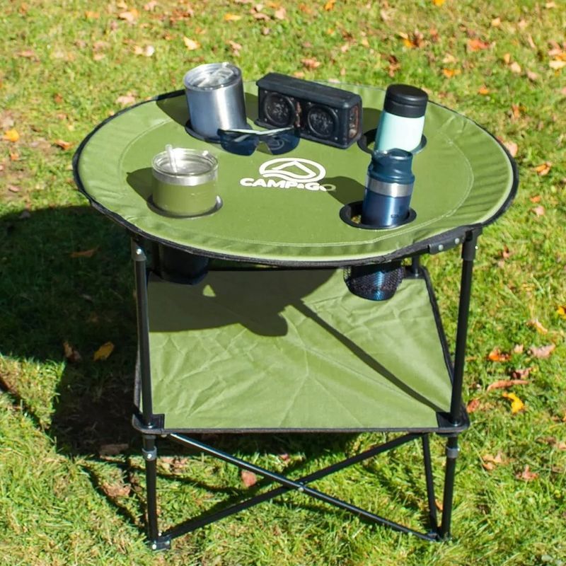 La mesa plegable redonda Camp & GO es una solución práctica y funcional para actividades al aire libre como camping, playa, picnic o jardín. Su diseño compacto permite transportarla fácilmente, mientras que su estructura estable ofrece una superficie cómoda para comer, cocinar o compartir momentos en grupo.