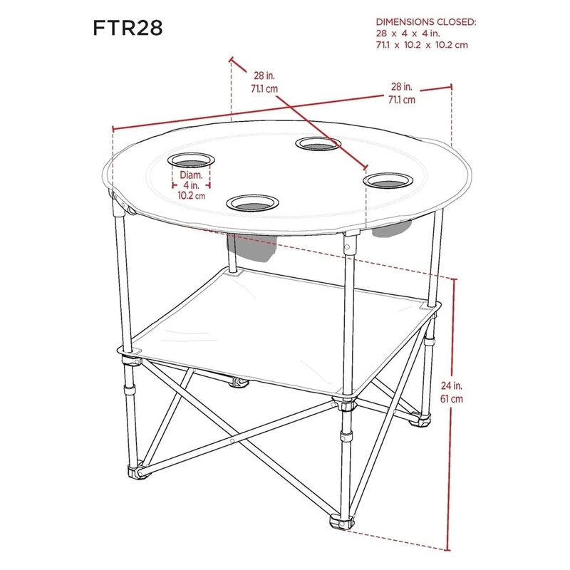 La base liviana se pliega como una silla cuádruple para facilitar su transporte a sus lugares favoritos al aire libre, y la mesa cubierta de tela se coloca y se quita para un almacenamiento compacto.