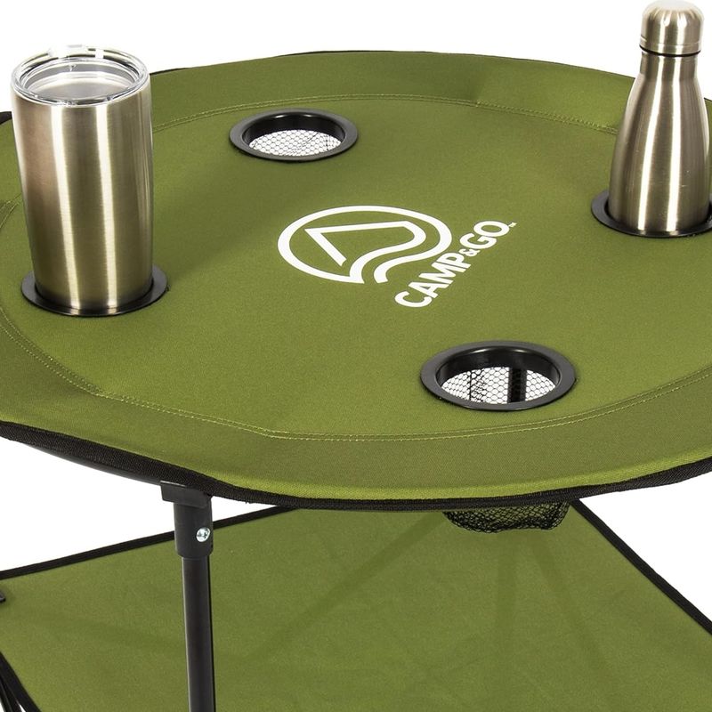 La mesa plegable redonda Camp & GO es una solución práctica y funcional para actividades al aire libre como camping, playa, picnic o jardín. Su diseño compacto permite transportarla fácilmente, mientras que su estructura estable ofrece una superficie cómoda para comer, cocinar o compartir momentos en grupo.
