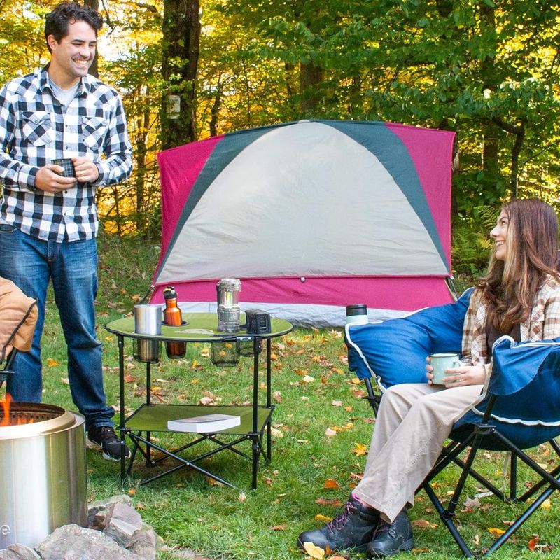 Mesa redonda portátil para exteriores, ideal para picnics, playa, parque, campamentos y reuniones al aire libre para tener comida, bebidas y objetos personales a la mano