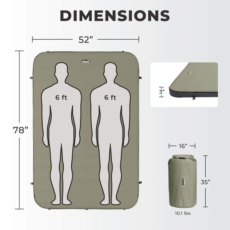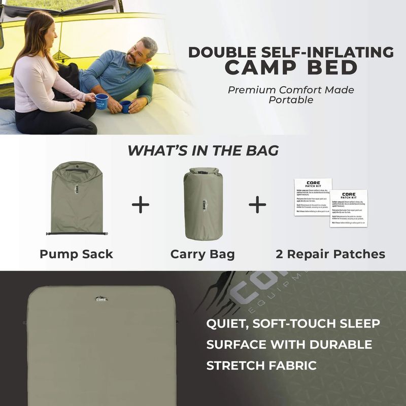 Diseñado con 3” de espuma autoinflable de felpa y una superficie para dormir suave similar a un colchón, disfrute de la comodidad y el soporte para todo el cuerpo para una noche de sueño reparador.