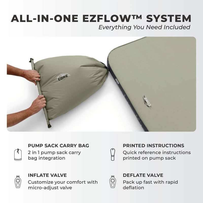a nuestro sistema EZFlow® y la bomba de inflado incluida, infle la colchoneta fácilmente en minutos. La función de microajuste integrada le permite ajustar la firmeza ideal, adaptándola a sus necesidades.