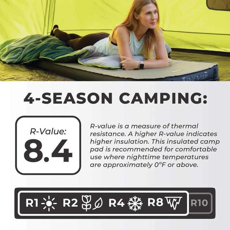 Con un valor R de 8,4 y optimizado para temperaturas tan bajas como 0 °F, las capas especializadas de espuma y tela trabajan juntas para garantizar que se mantenga cálido y cómodo.
