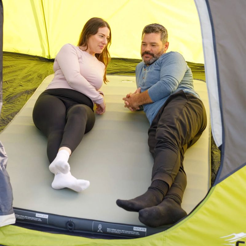 La Core Colchoneta Doble Autoinflable 4 Estaciones brinda máximo confort y aislamiento térmico para dos personas. Su sistema autoinflable facilita el uso, mientras que su diseño resistente la hace ideal para camping, viajes y actividades al aire libre durante todo el año.