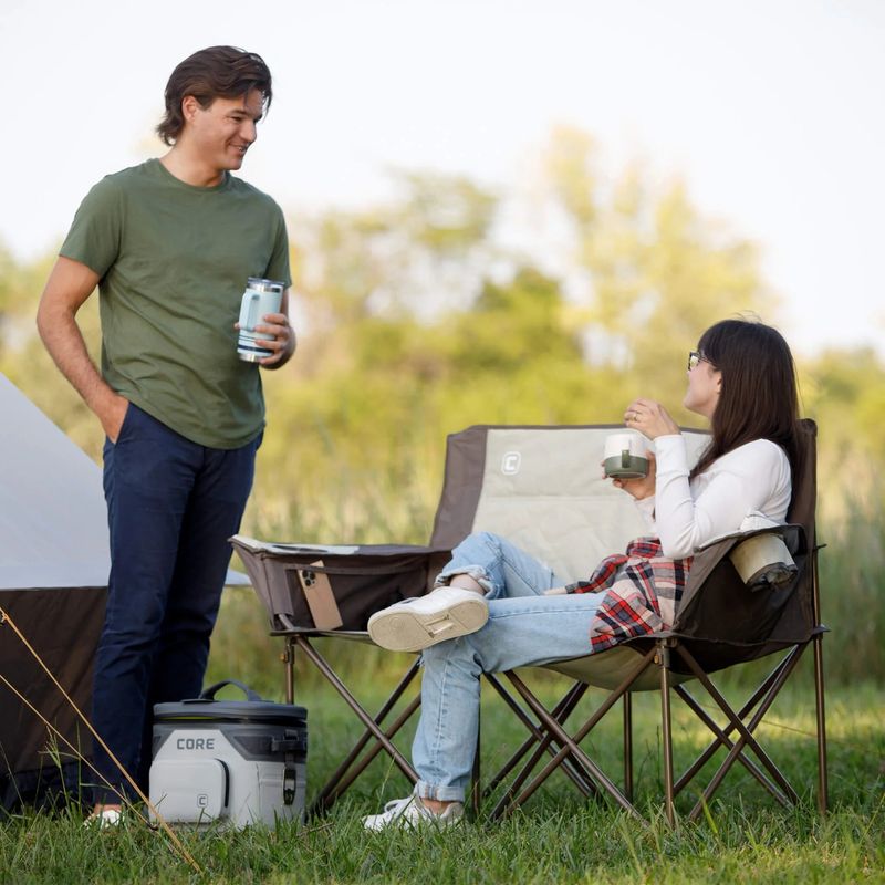La Silla Doble Plegable de Core es una solución de asiento para dos personas, ideal para camping, eventos al aire libre y jardines. Ofrece comodidad para parejas o amigos, con un diseño plegable para fácil transporte y almacenamiento.