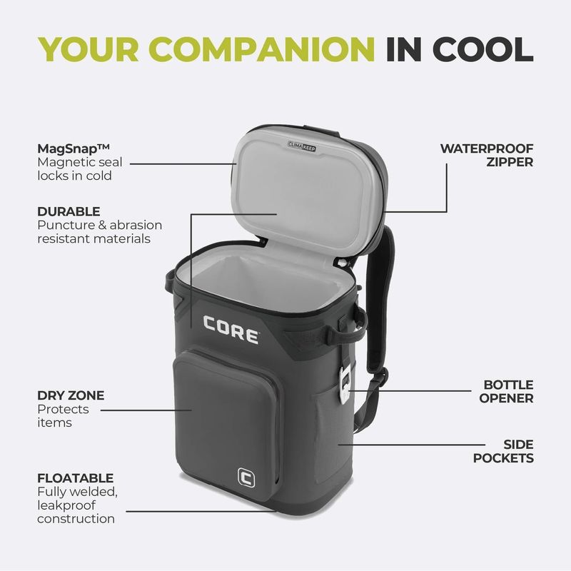 El Core Soft Cooler 24 latas es un cooler térmico compacto diseñado para mantener bebidas frías durante horas gracias a su aislamiento de alta eficiencia su interior es a prueba de fugas y su exterior resistente lo hace ideal para llevar a la playa picnic caminatas o salidas rápidas manteniendo la portabilidad sin sacrificar rendimiento