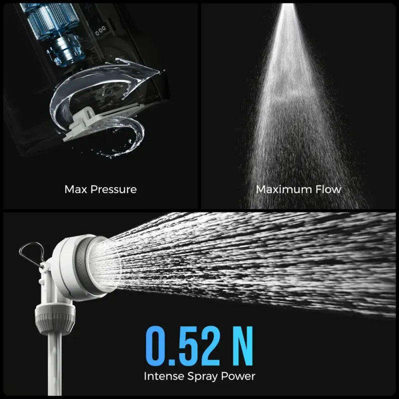 Bolsa de ducha portátil de 20 l con bomba eléctrica incorporada que ofrece un caudal potente de 4,5 a 5 l/min, ideal para disfrutar de duchas refrescantes al aire libre durante actividades como camping, senderismo o viajes a la playa.