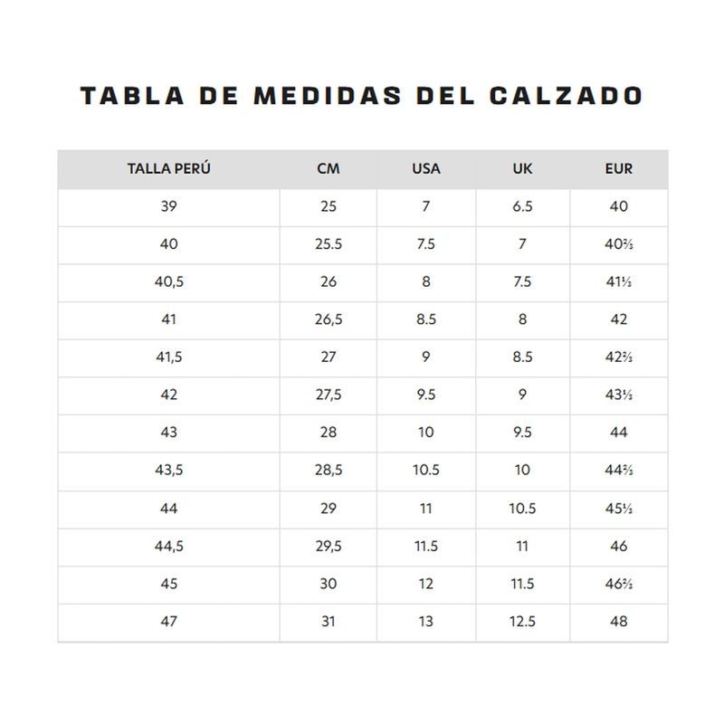 • Mud Contagrip®: Tenis diseñado para un agarre máximo en superficies resbaladizas, blandas, accidentadas e irregulares, la tecnología Mud Contagrip® utiliza tacos profundos y puntiagudos para mejorar el agarre a los terrenos complicados.