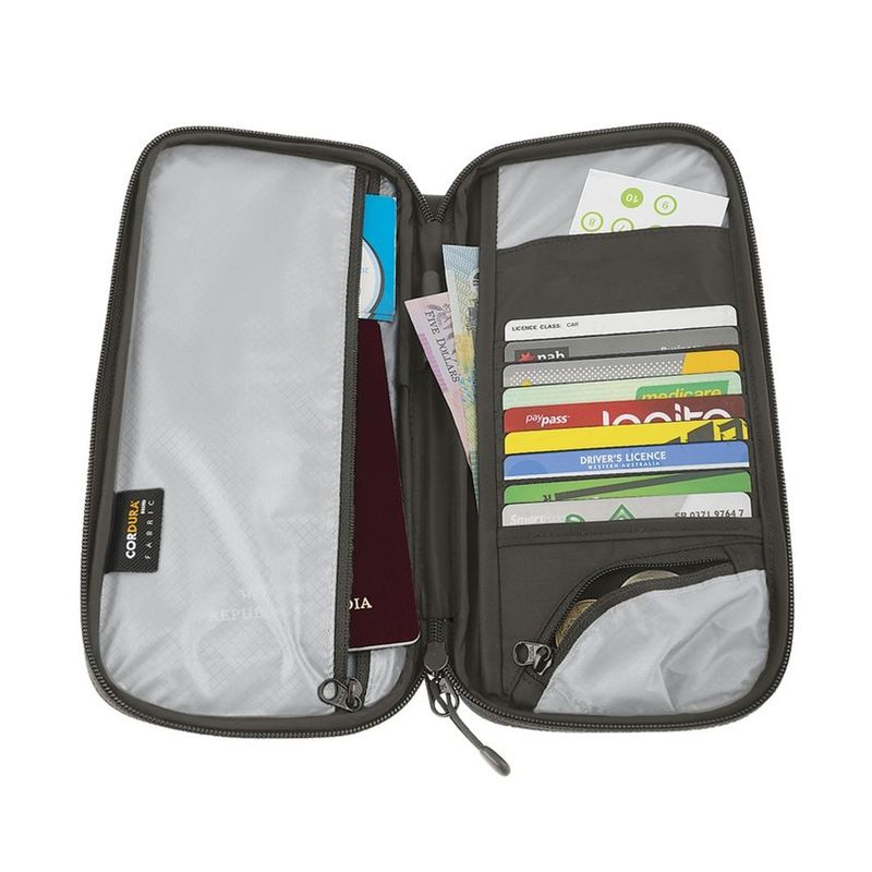 La billetera Sea To Summit Travel RFID en color gris está diseñada para viajeros que buscan seguridad y organización. Incorpora protección RFID para resguardar tarjetas y documentos contra escaneos no autorizados. Su diseño compacto y liviano la hace ideal para viajes, ofreciendo practicidad, durabilidad y tranquilidad en cada trayecto.