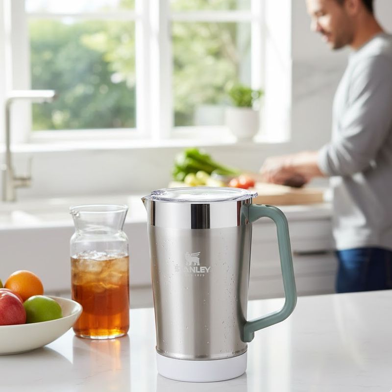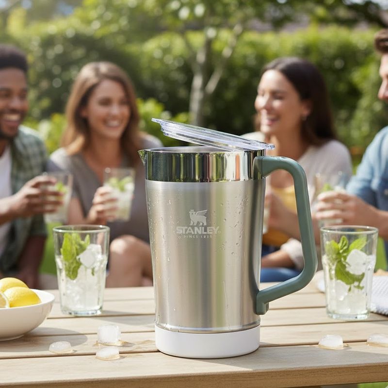 La jarra térmica Stanley Classic Pitcher de 1.9 litros está diseñada para compartir bebidas en cualquier ocasión. Su gran capacidad la hace perfecta para reuniones, campamentos y actividades al aire libre, manteniendo la temperatura por largos periodos.