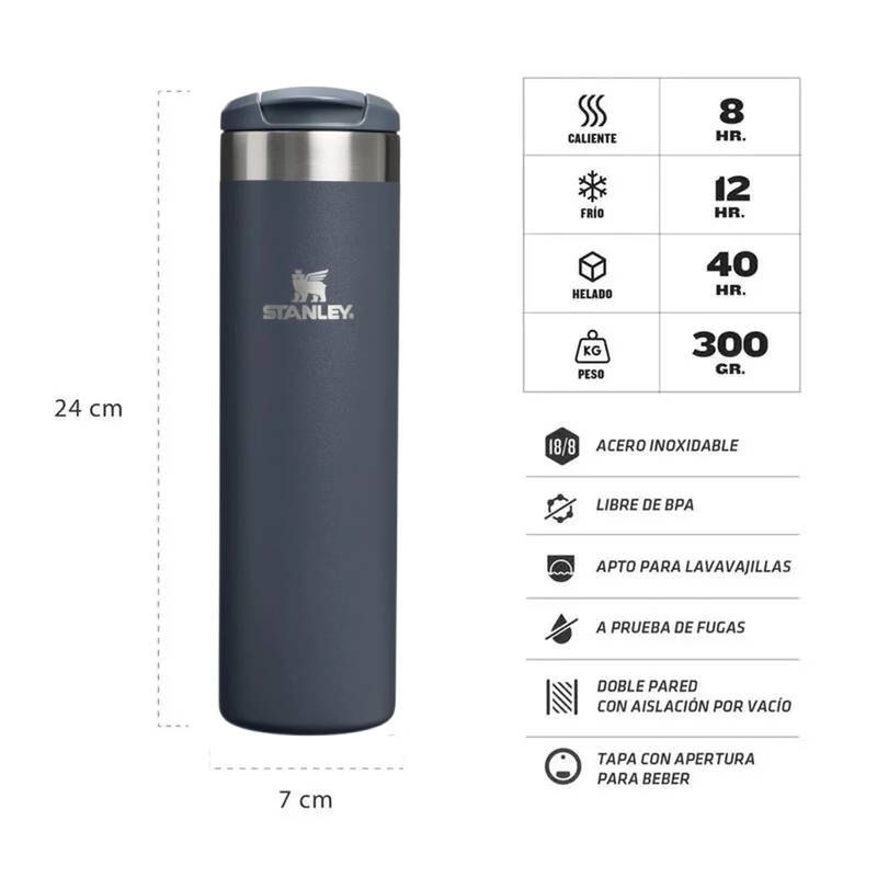 El termo Stanley Transit AeroLight de 591 ml está diseñado para ofrecer máximo rendimiento con un peso reducido. Gracias a su aislamiento térmico eficiente, conserva bebidas frías o calientes por más tiempo. Su diseño práctico lo hace ideal para viajes, traslados diarios, trabajo o actividades al aire libre, manteniendo la calidad y resistencia características de Stanley.
