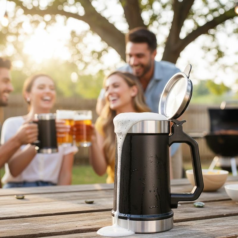 El vaso cervecero Stanley Beer Stein de 710 ml en color negro está diseñado para disfrutar la cerveza a la temperatura ideal durante más tiempo. Su gran capacidad y tapa ayudan a conservar el frío y evitar derrames, siendo perfecto para parrillas, campamentos y encuentros con amigos.