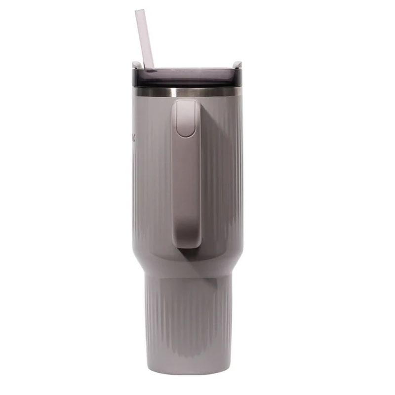 Renová tu rutina de hidratación con el nuevo Quencher H2.0 de 40 oz, que incorpora una textura elegante, tonos neutros refinados y sutiles detalles metálicos que lo convierten en un verdadero objeto de deseo. Su tapa tintada y el pitillo reutilizable completan un diseño que enamora a primera vista.