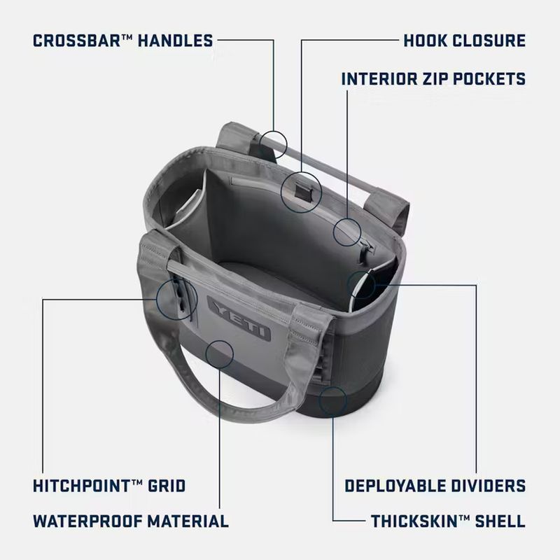 El bolso de mano YETI Camino de 20 litros está diseñado para acompañarte en cualquier aventura. Fabricado con materiales resistentes al agua y fáciles de limpiar, es ideal para la playa, camping, viajes cortos o uso diario. Su diseño práctico y duradero ofrece amplio espacio y comodidad, manteniendo tus pertenencias protegidas en todo momento.