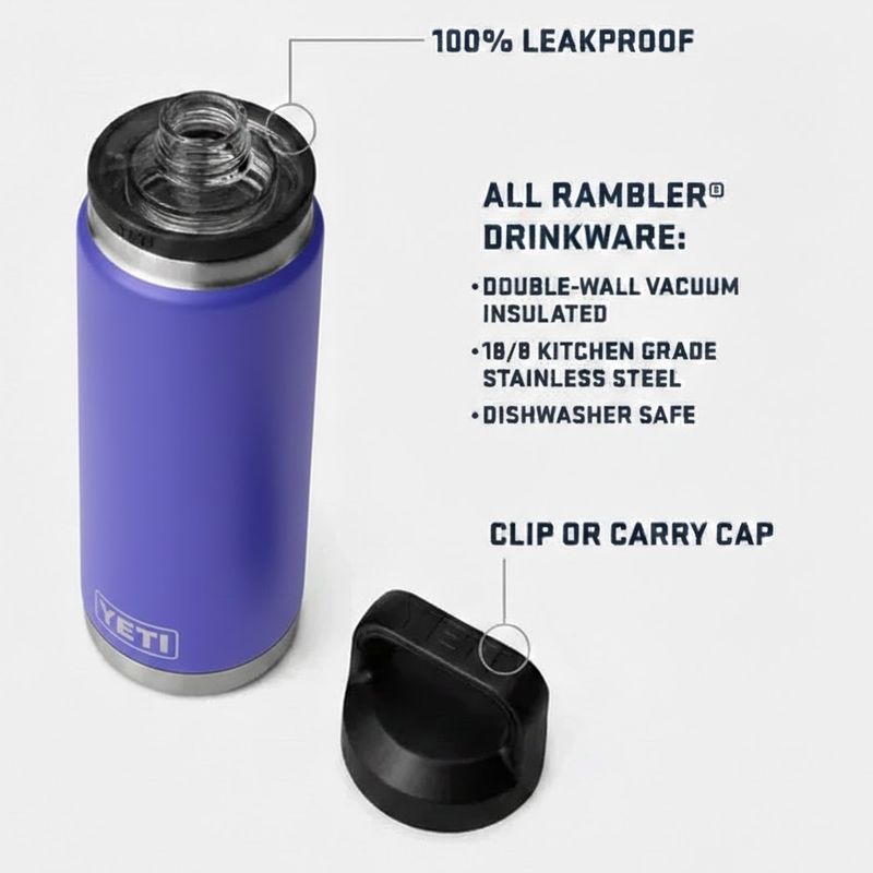 La botella de agua YETI Rambler de 769 ml en color Navy ofrece un excelente rendimiento térmico para mantener tus bebidas frías o calientes durante más tiempo. Su construcción robusta y diseño práctico la hacen ideal para el uso diario, viajes y actividades outdoor, garantizando durabilidad y comodidad en cada aventura.