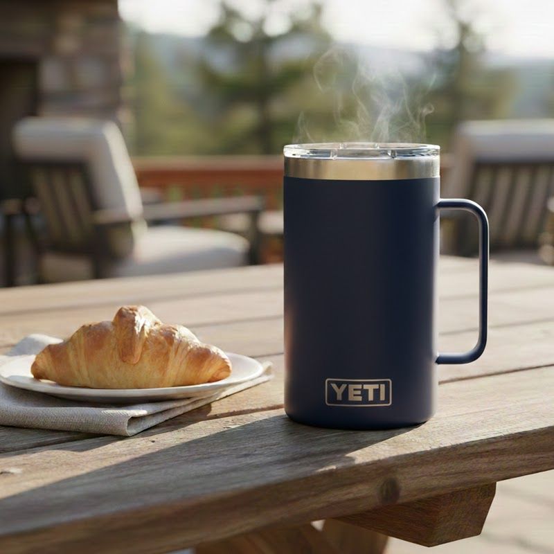 La YETI Rambler de 709 ml es una taza térmica de acero inoxidable diseñada para mantener bebidas calientes o frías por largas horas. Ideal para el uso diario, trabajo, viajes y actividades al aire libre, destaca por su gran capacidad, durabilidad y su elegante acabado en Navy.
