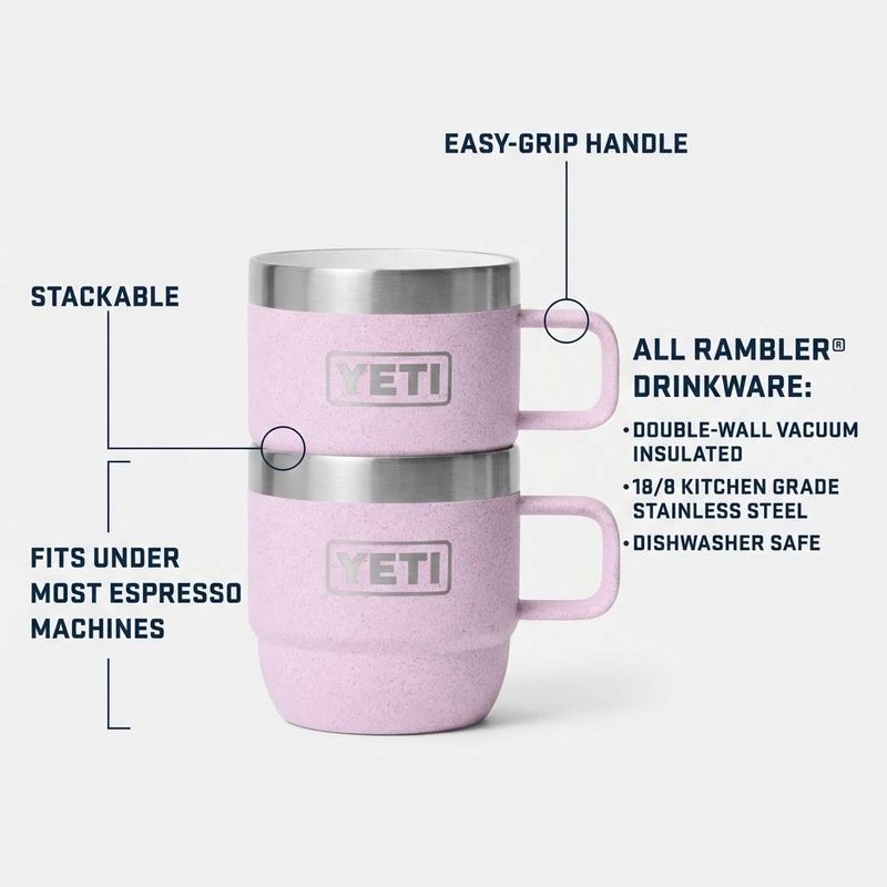 La taza apilable YETI Rambler de 177 ml en color Cherry Bloossom es perfecta para espresso o café corto, combinando un diseño compacto con la resistencia característica de YETI. Su aislamiento térmico ayuda a mantener la temperatura de la bebida por más tiempo, mientras que su formato apilable facilita el almacenamiento en casa o en actividades outdoor.